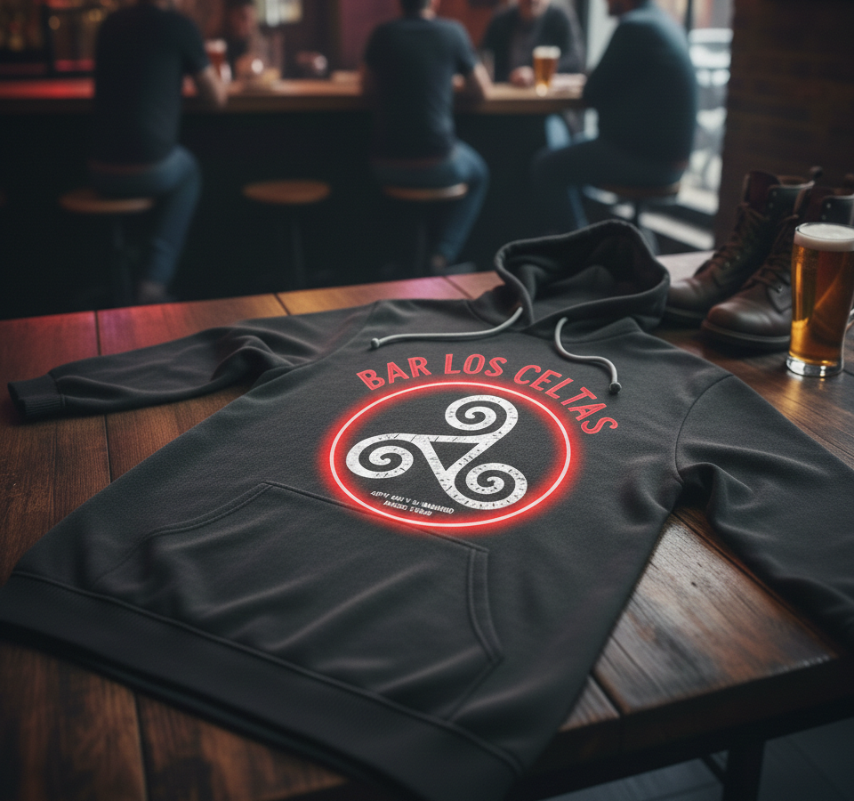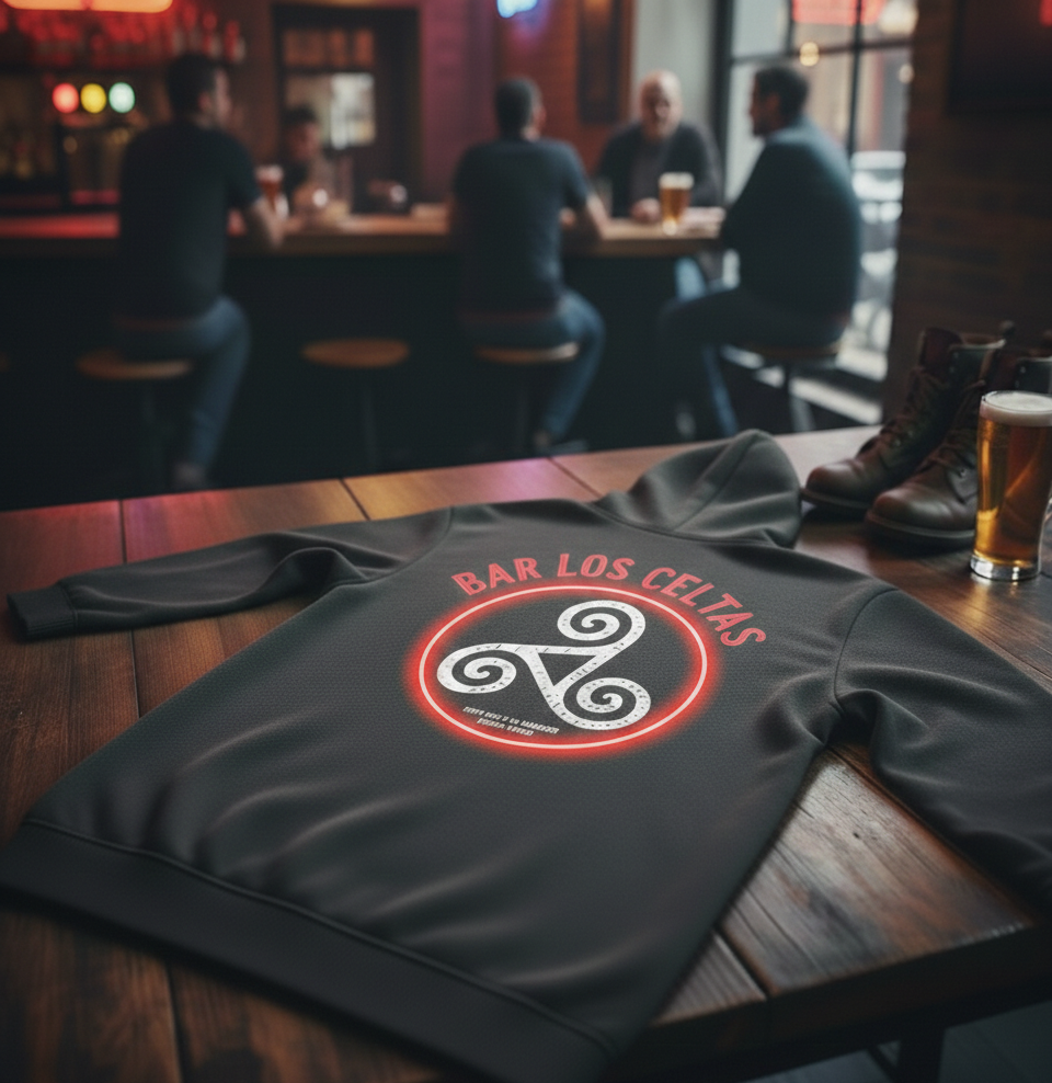 Exclusive Branding: The “Bar Los Celtas” wordmark is screen-printed in vibrant crimson, ensuring your loyalty to the spot is seen from a mile away.